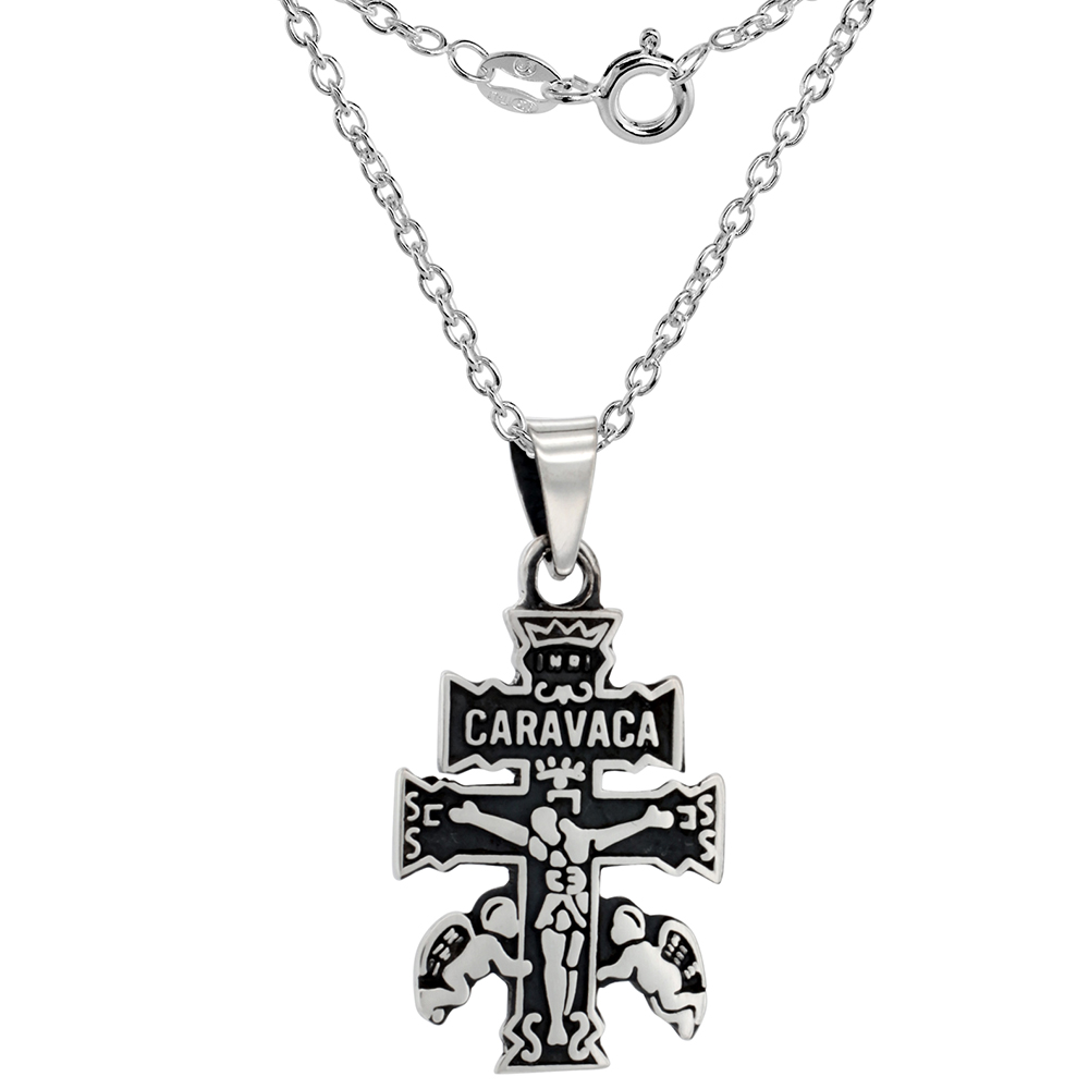 STERLING SILVER CARAVACA CROSS NECKLACE HANDMADE 1 INCH TALL 1MM BOX CHAIN