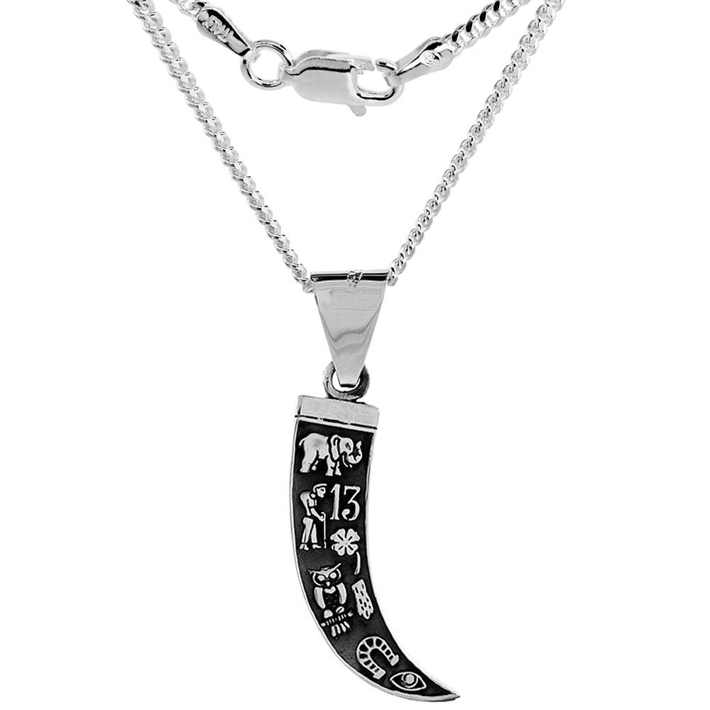 STERLING SILVER SMALL HORN NECKLACE GOOD LUCK CHARM HANDMADE 1 1/16 INCH TALL R_50 [Mouse Over to Zoom]